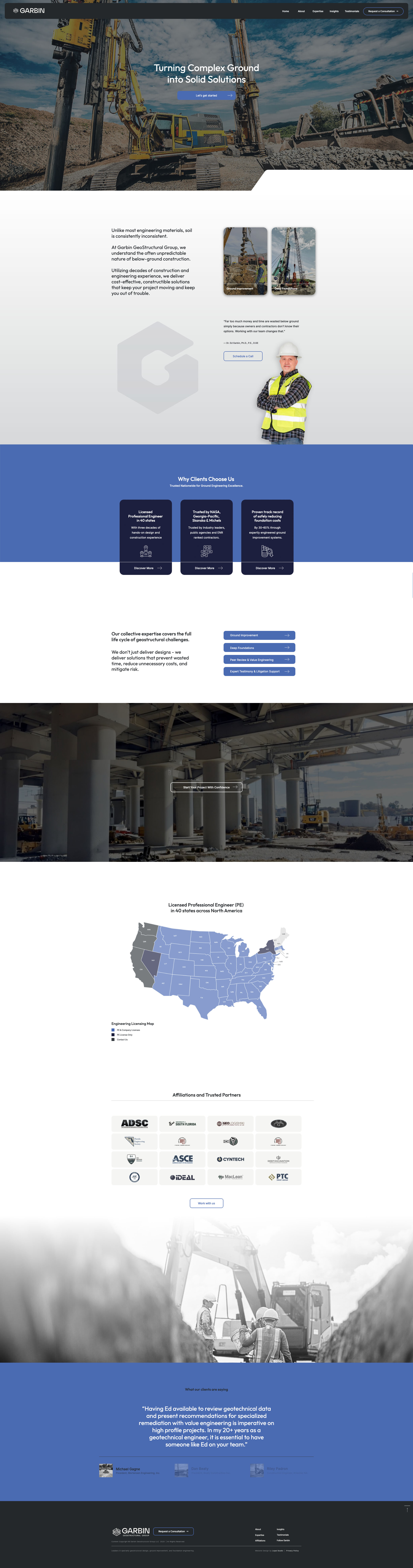Once the brand direction was clear, we moved onto the website design. I wanted the site to be clean, intuitive, and highly functional, while also reflecting the quality and precision of Garbin GeoStructural Group’s services.
